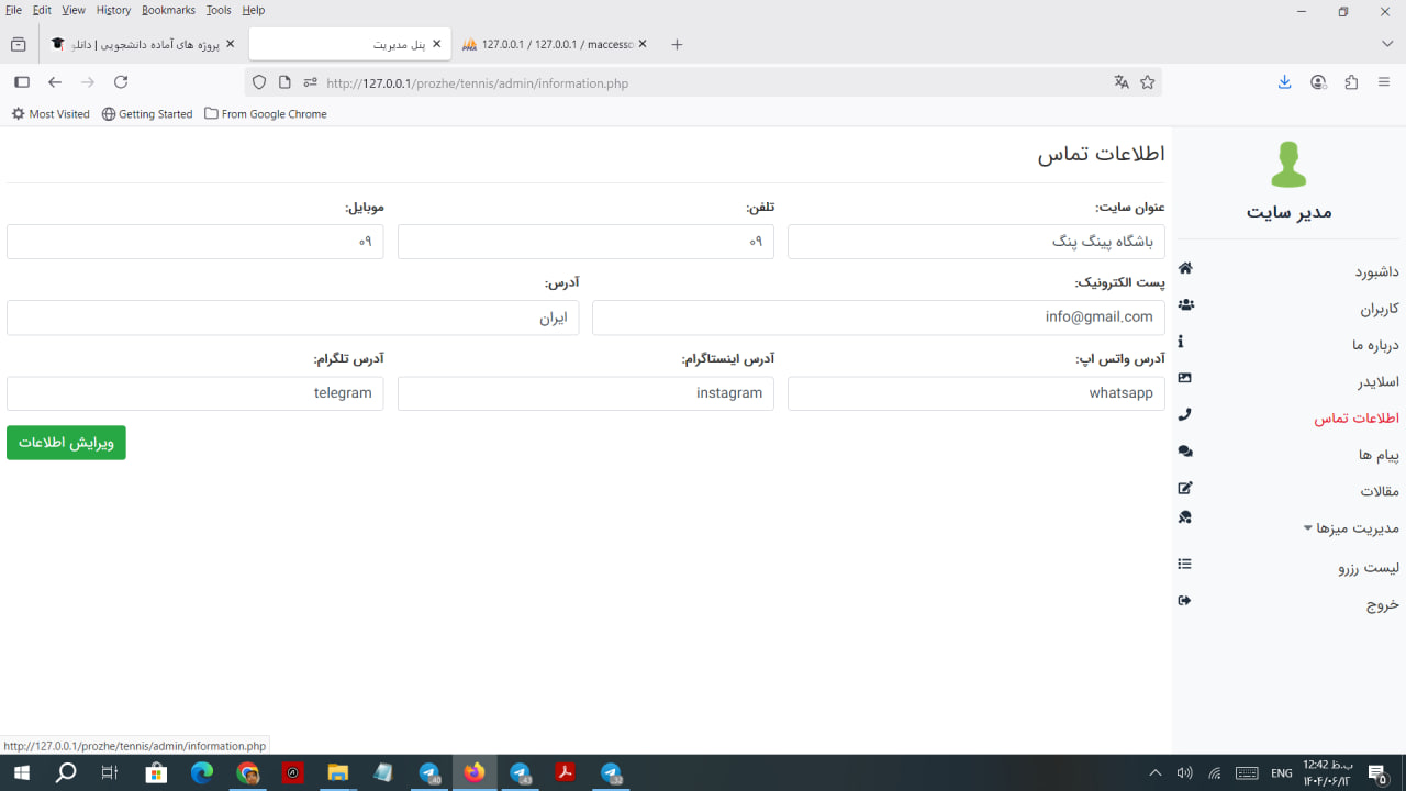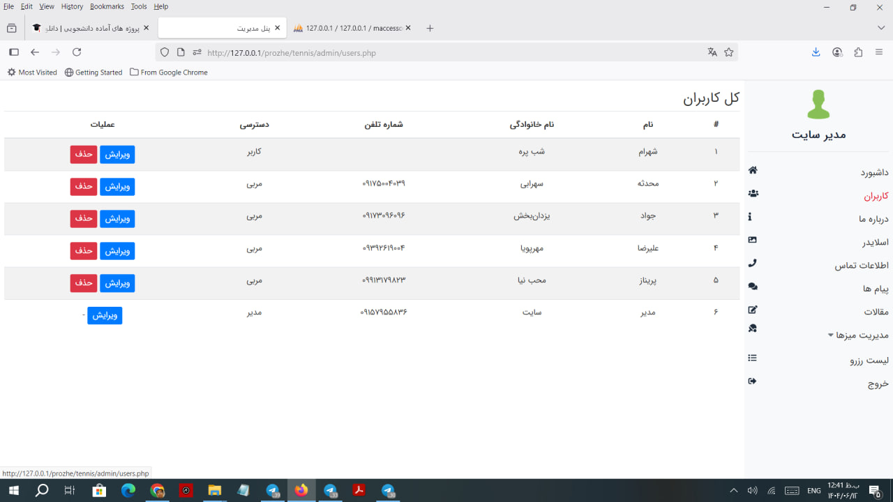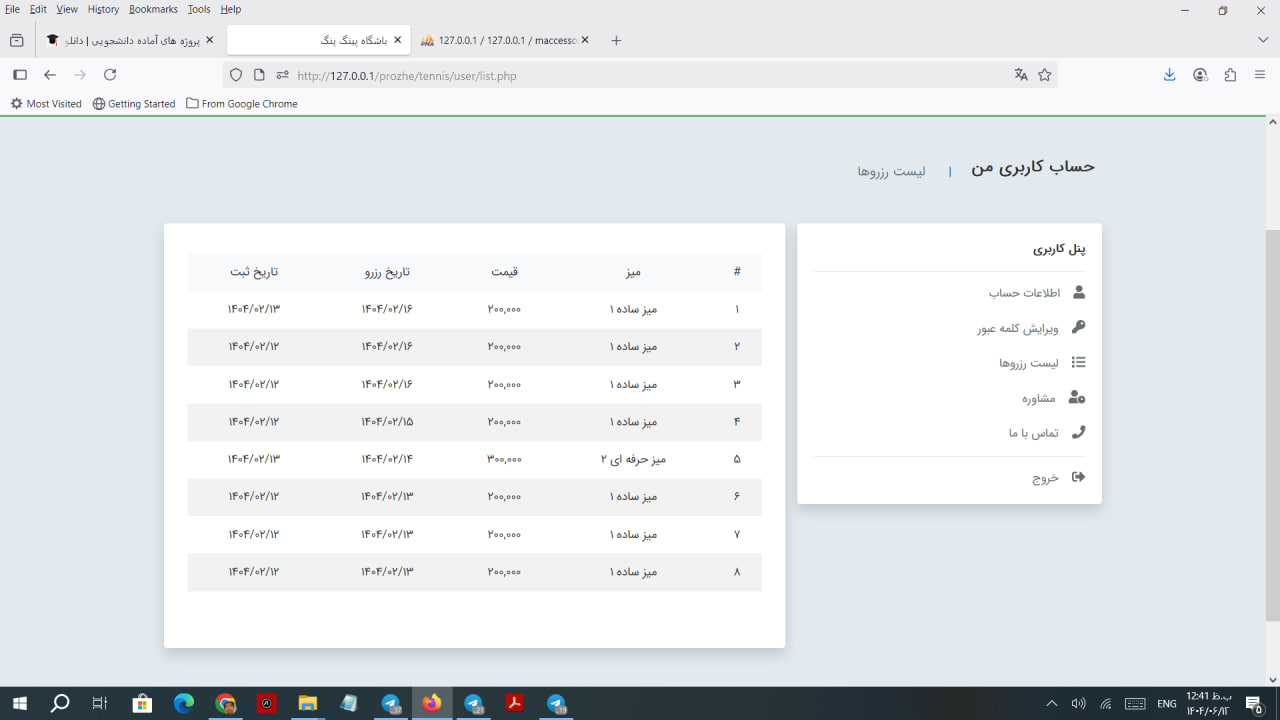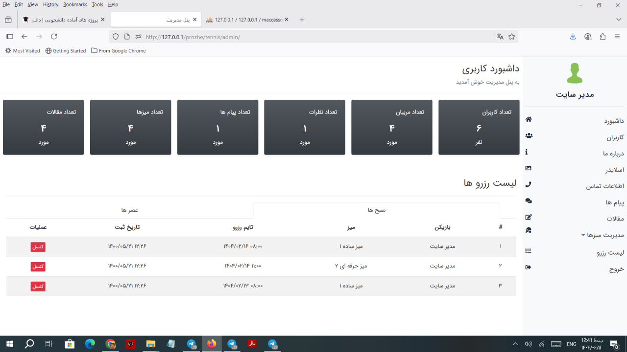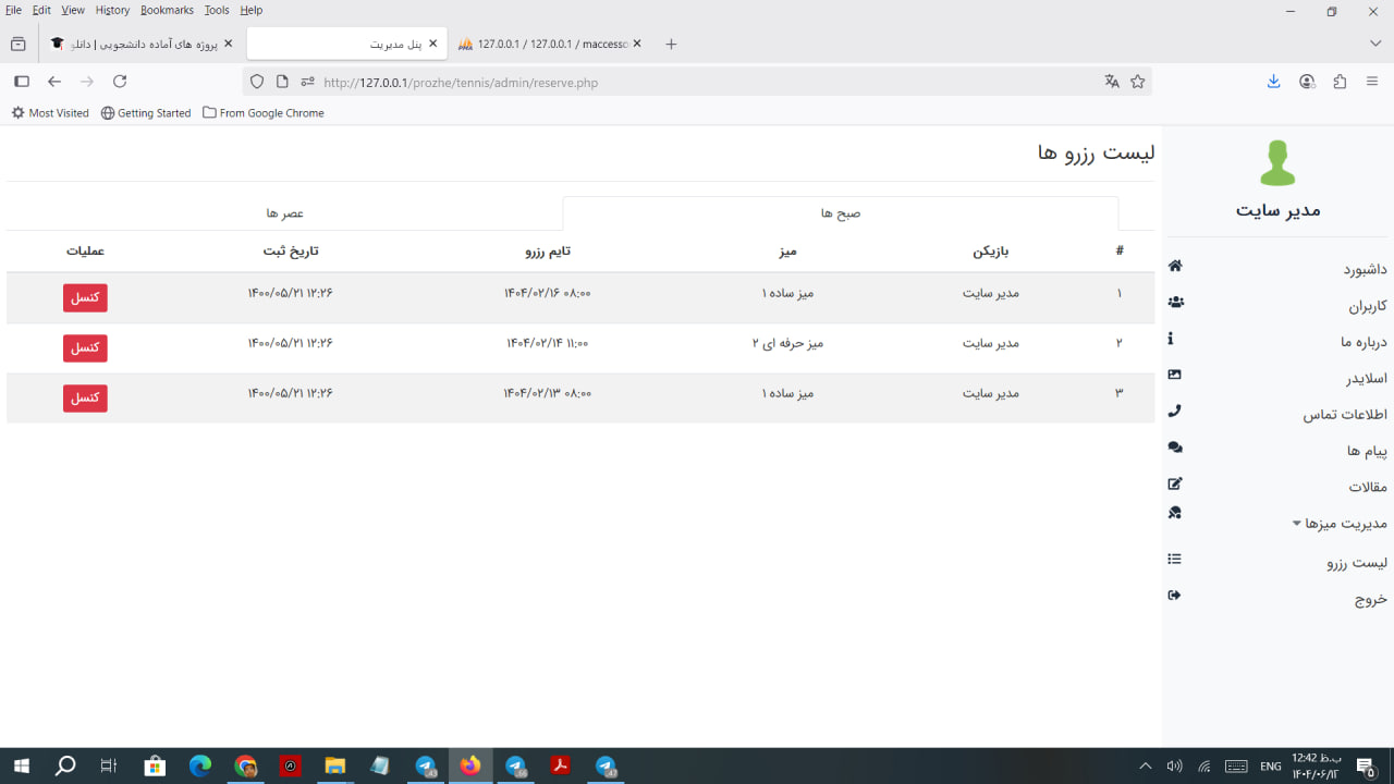 • مدیریت کامل رزرو ها(نمایش - درج - ویرایش - حذف)
