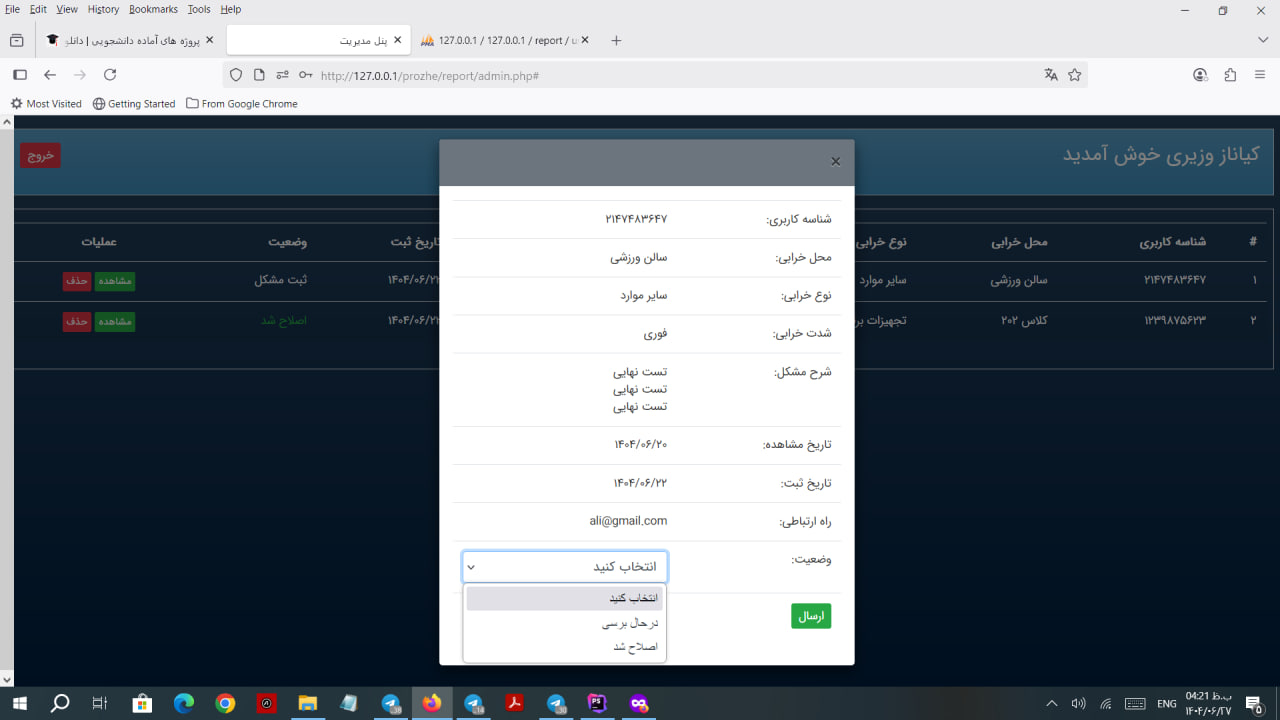 - تغییر وضعیت مشکلات