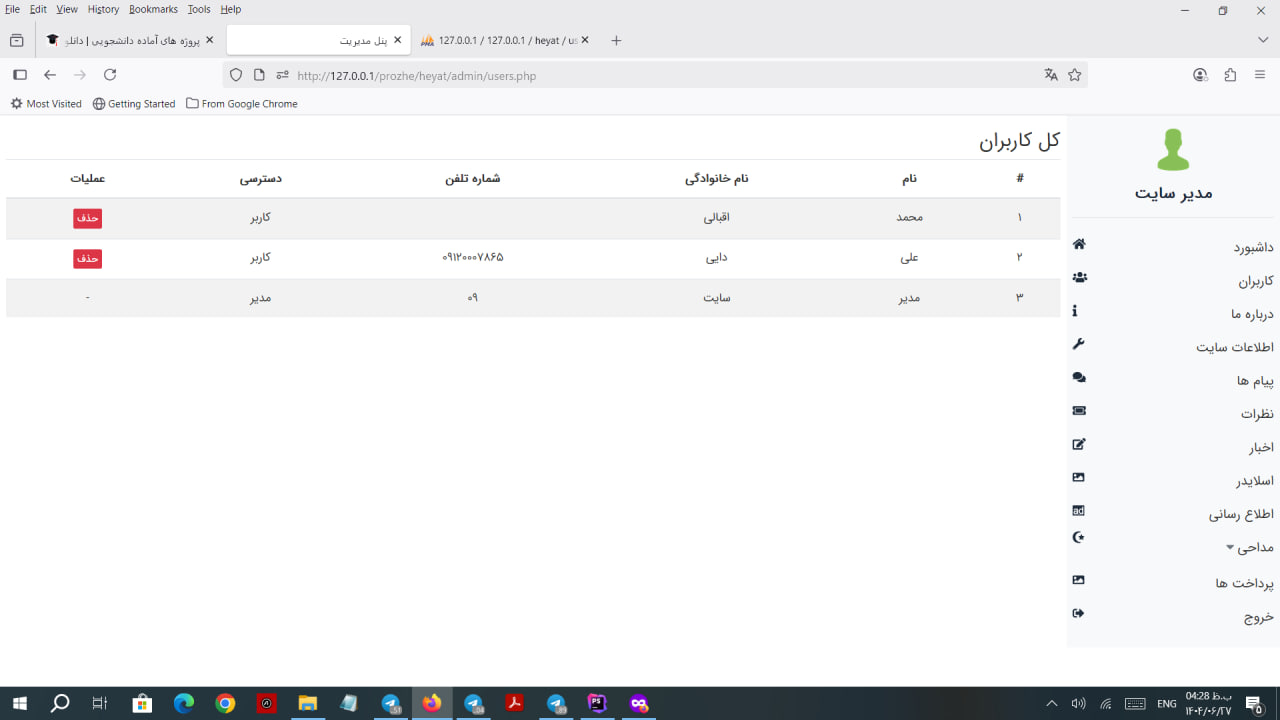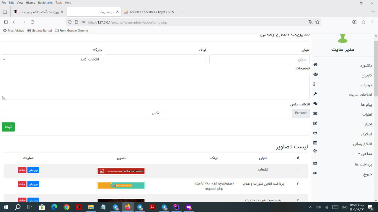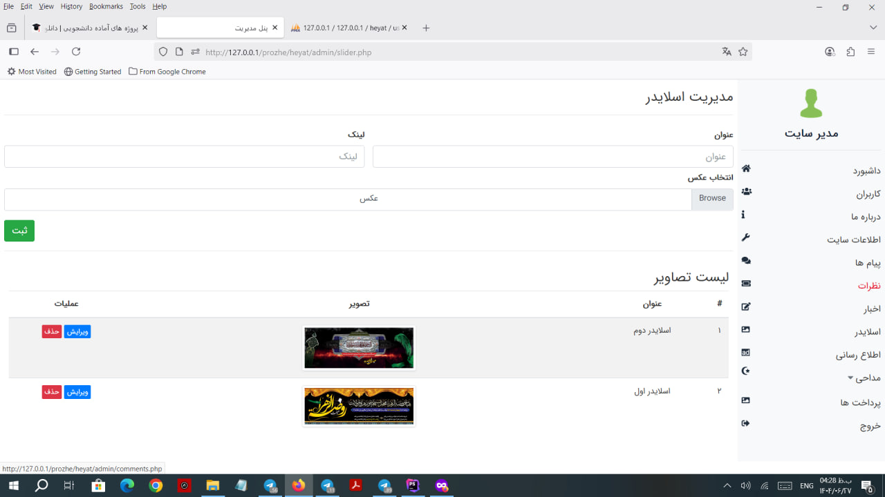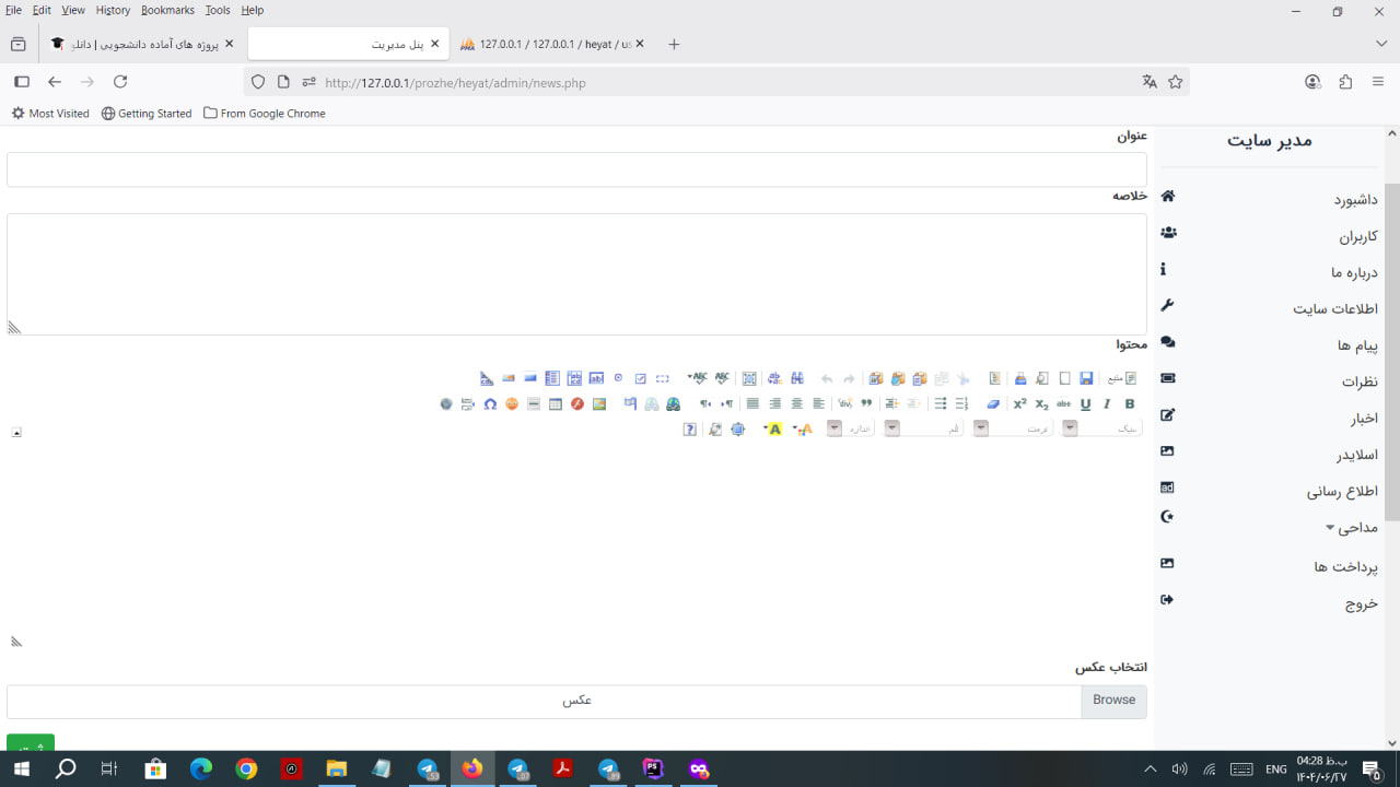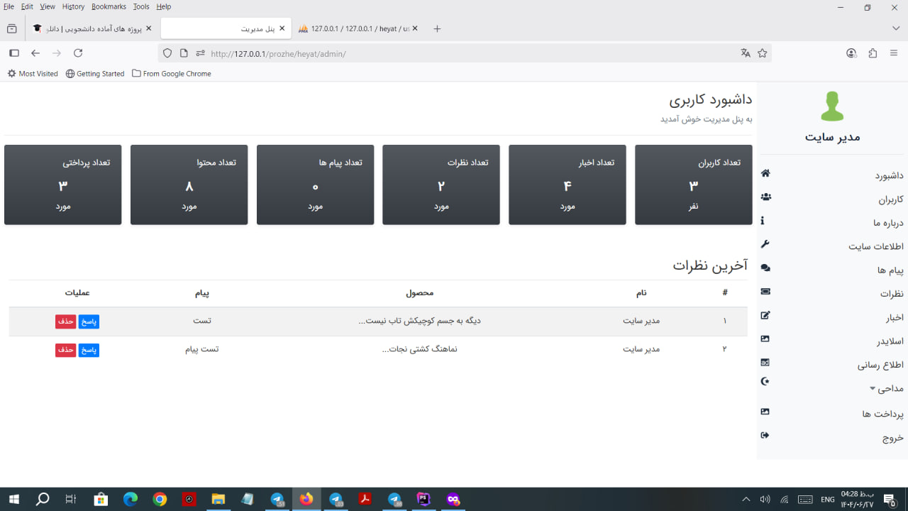 - مدیریت کامل محتوا (درج - ویرایش - حذف)