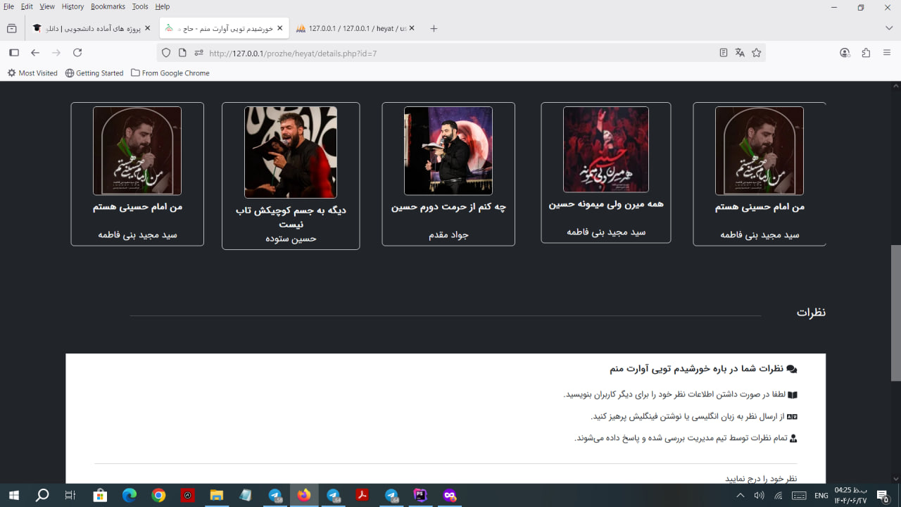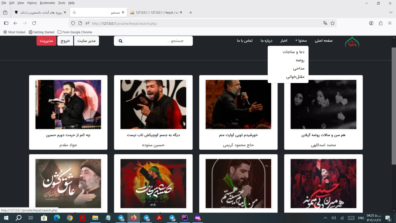 در کنار این امکانات، بخش جستجوی هوشمند محتوا امکان یافتن سریع نوحه، مداح یا کلیپ موردنظر را فراهم میکند. از سوی دیگر، پنل مدیریت حرفهای و کامل سایت به مدیران این امکان را میدهد تا تمامی بخشها از جمله کاربران، محتوا، پرداختها، تبلیغات و نظرات را بهصورت یکپارچه مدیریت کنند.