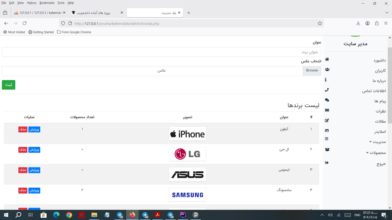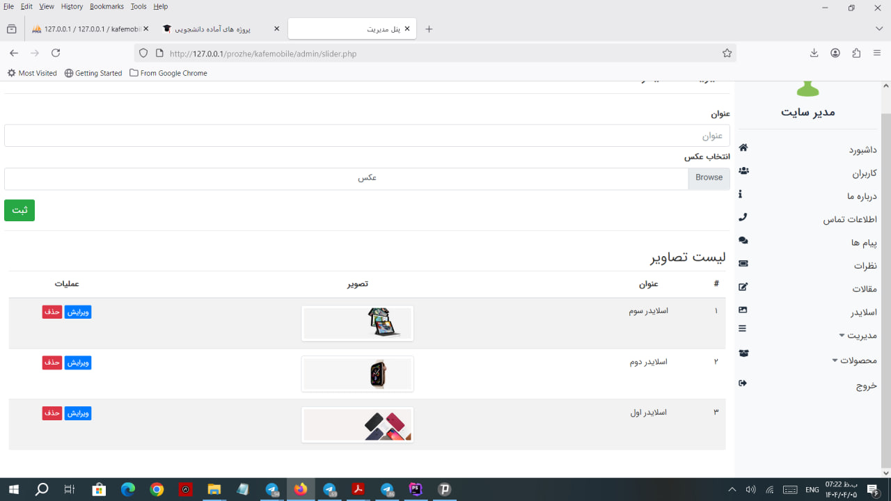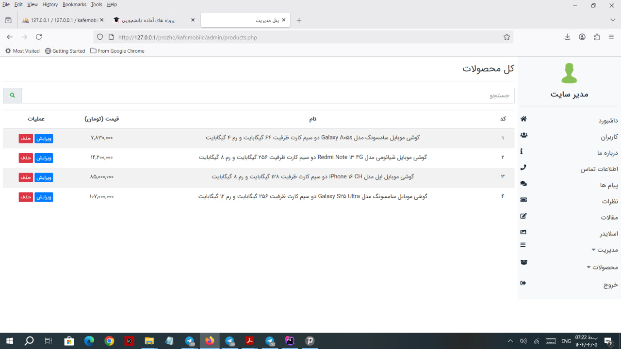 - مدیریت کامل محصولات (نمایش - درج - ویرایش - حذف)