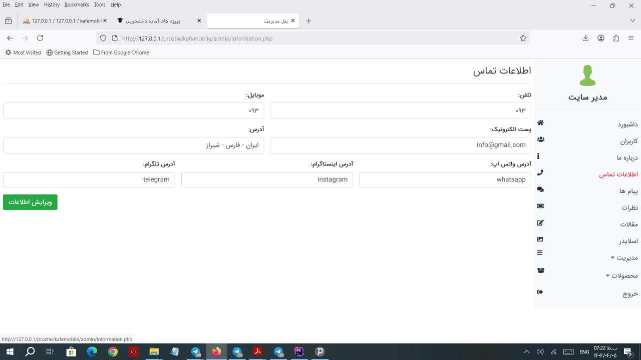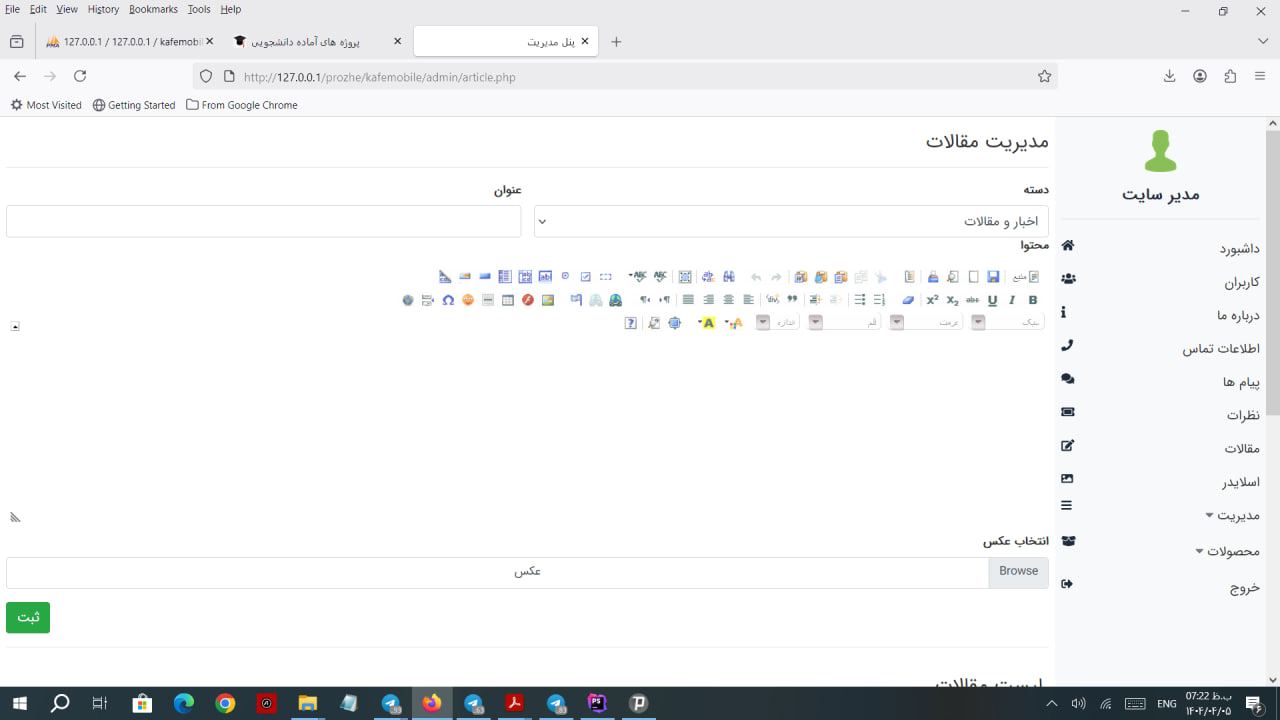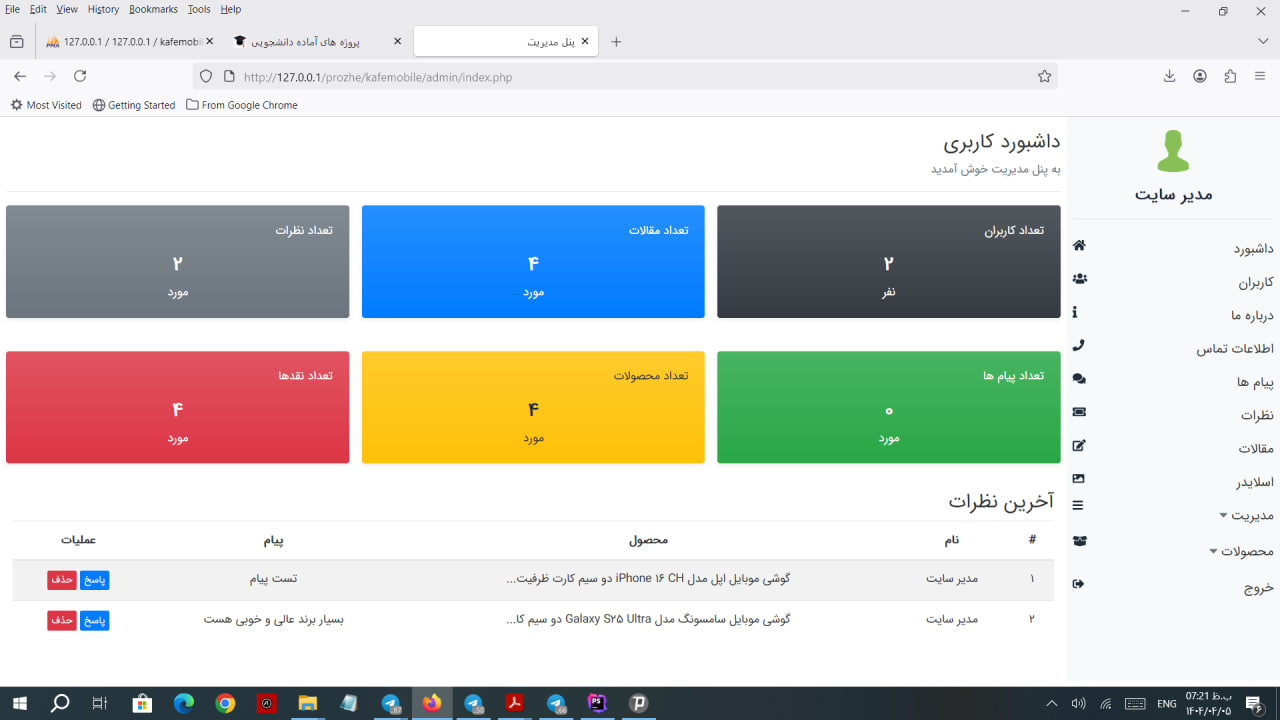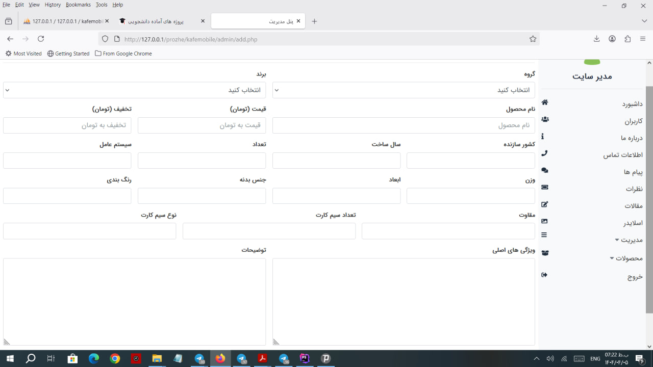 - مدیریت کامل محصولات (نمایش - درج - ویرایش - حذف)