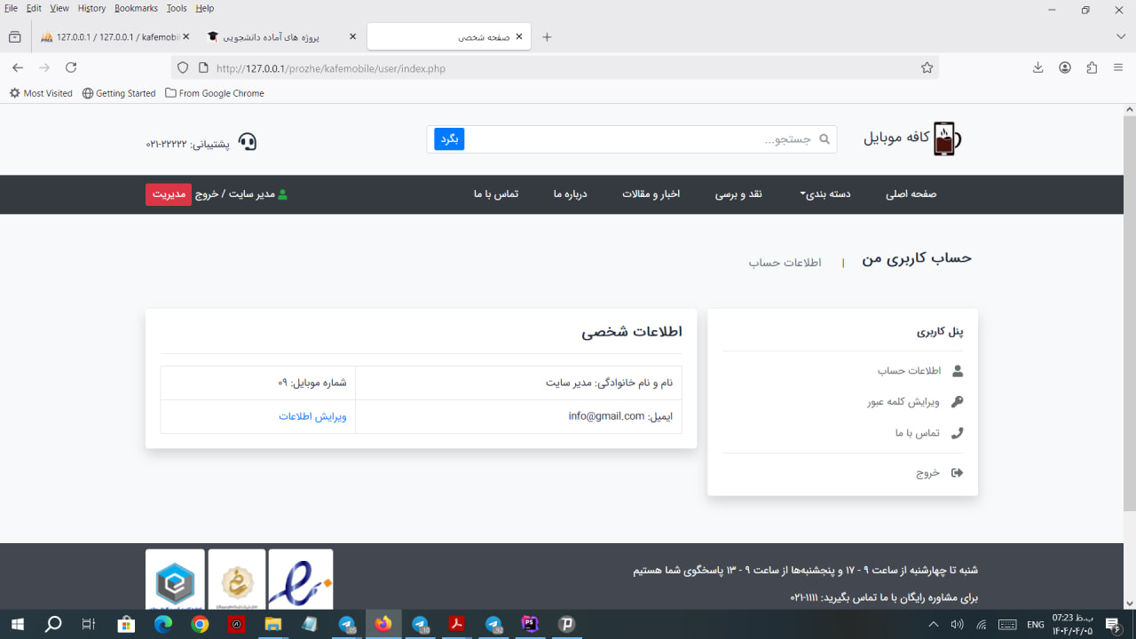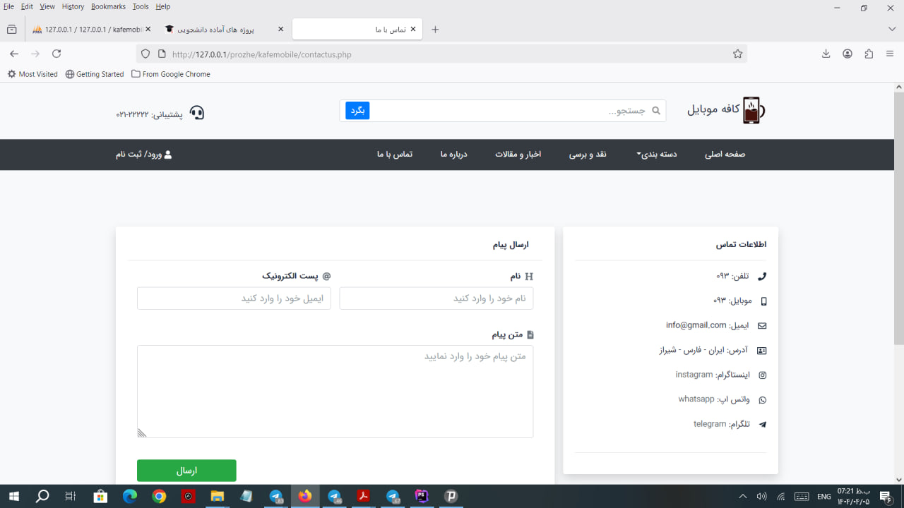 بک اند با زبان برنامه نویسی php و دیتابیس mysql می باشد.