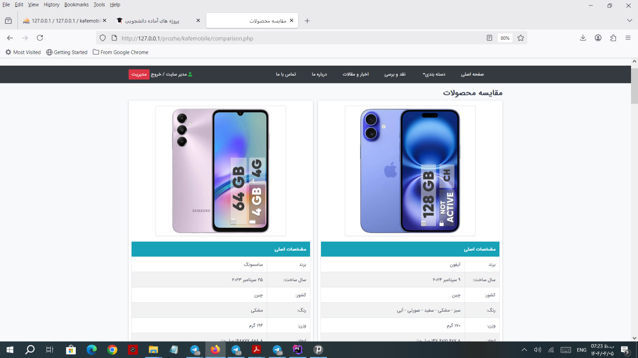 مدیر سایت از بخش پنل مدیریت سایت کالاهارا درج کرده و کاربران از بخش مقایسه می توانند همزمان 2 تا چند کالا را کنار یکدیگر قرار داده و مقایسه نمایند.