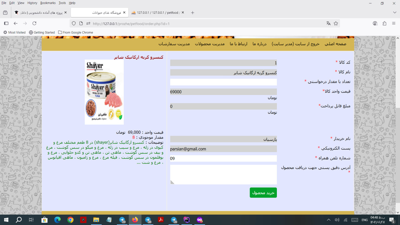 پروژه فروشگاهی - سورس فروشگاه حیوانات خانگی