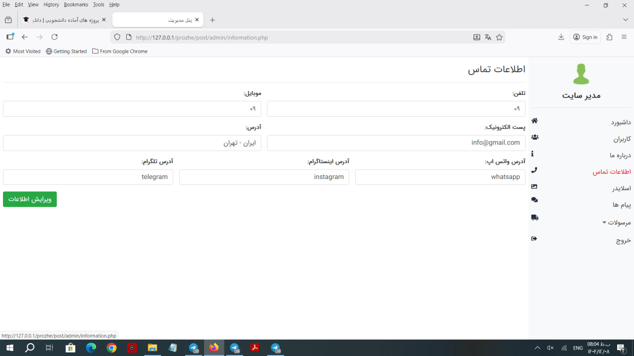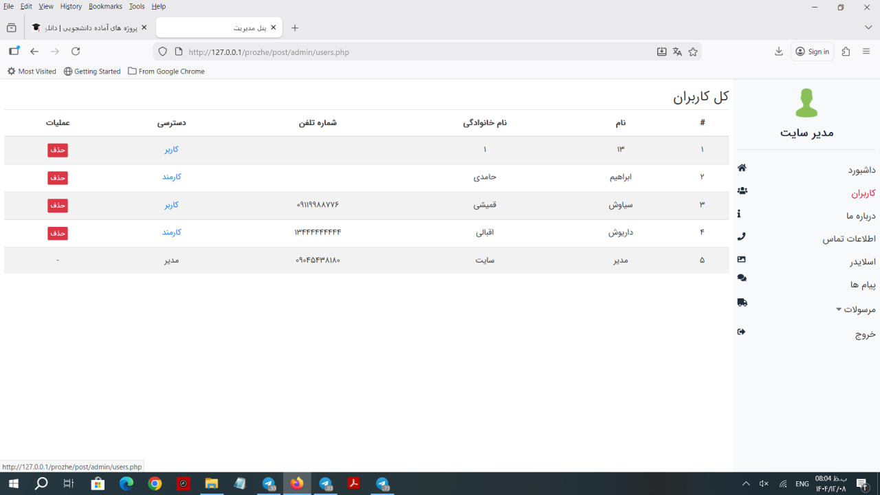 • مدیریت کامل اطلاعات (اضافه - ویرایش - حذف)