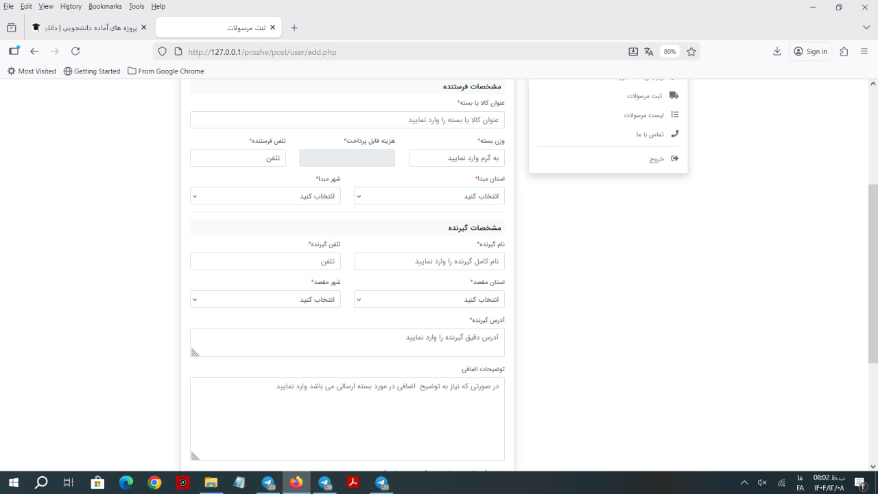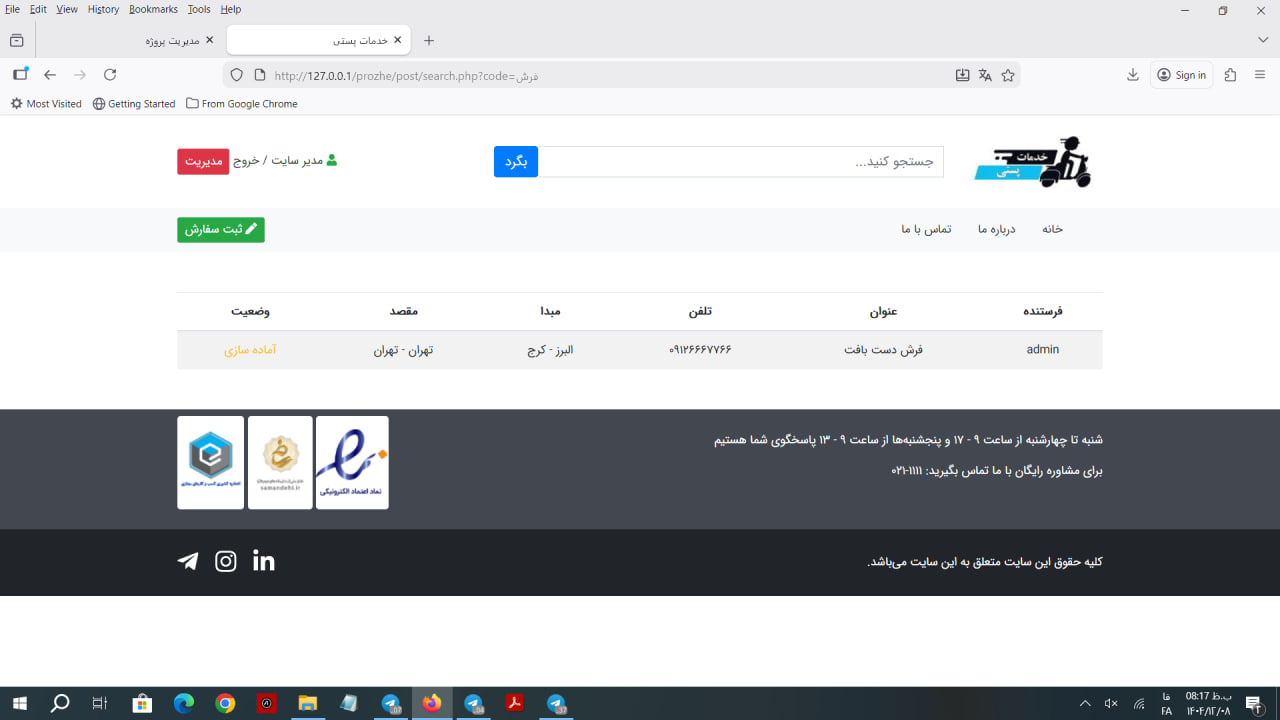 با استفاده از این پروژه می توانید یک سایت ثبت سفارشات پستی برای خود راه اندازی نمایید.